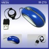Mini Optical mouse with Retractable Cable Features 1. Sunplus Sensor: High precision optical sensor mouse 2. Ergonomics designed mouse 3. 800DPI High resolution mouse 4. 3 button optical mouse,zoom in and out function,over 1.000.000 times 5. Plug and play,no need driver 6. Mouse cable:1.2m 7. Port: PS2/USB or USB+PS2 available 8. Mouse with all kinds of colors,customized color or rubber coating colors available 9. Mouse can Work on any surface except glass and mirror Model NumberM-215Product NameMini opticalmouseMain DiscriptionSuper long working life,Small Size for notebook or children,Ideally designed for travel or home off where space is limited on an airplane tray,desktop or home office,special lens optical technology ensures perfect response to mouse moving on any surface except glassResolution1000DPICompatibleUSB,PS2,U+PKey-Press LifeMore than 2 million timesSystem CompatibilityMouse can compatible with windows 2000/XP/9X/ME/NT4.0,Also compatible with windows vista/windows 7CableRetractable CableWork surfaceIt can work on any surfaceColorRed,Blue,Green or Customized request PMSMOQ1000pcsPackageColor box,Blister package,white boxQuantity/Carton100pcsCarton Size43*28*50CMN.W/Carton5KGSG.W/Carton6KGSDelivery time7DaysQuantity for 20'' GP46000pcsQuantity for 40'' GP96000pcs